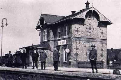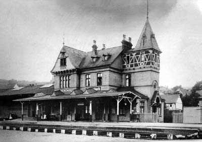 Stationsgebäude in Ferndorf um 1915 mit verziertem Giebel und ornamentaler Beschieferung