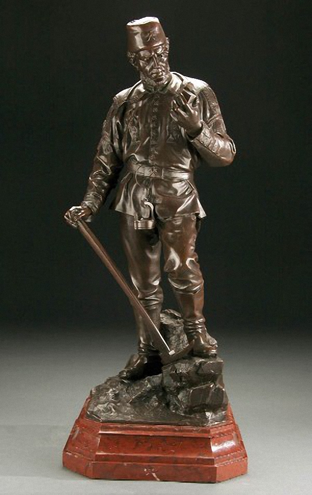 Siegerländer Bergmann, Bronze auf Marmorsockel, Höhe ca. 63 cm. Am Sockel signiert: F. Reusch, 1893 -1843 Siegen - 1843 Girgenti (Bild aus helmut-langenbach.de)