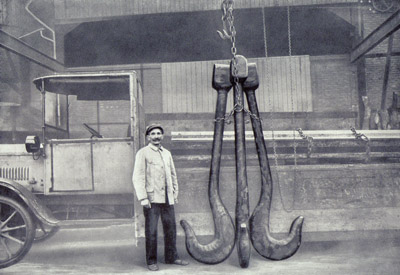 Auch solche riesigen Kranlasthaken wurden im Allenbacher Hammerwerk geschmiedet