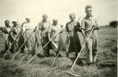 Da vom Mähen bis zum Aufladen bei der Heuernte seinerzeit alles von Hand erledigt wurde, benötigte man viele Helfer